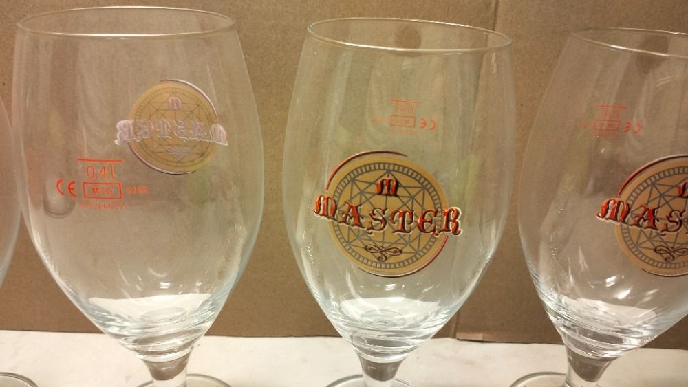 Daruji za odvoz čtyři pivní sklenice Master s cejcovanou ryskou 0,4 l (ale pojme i půl litru).