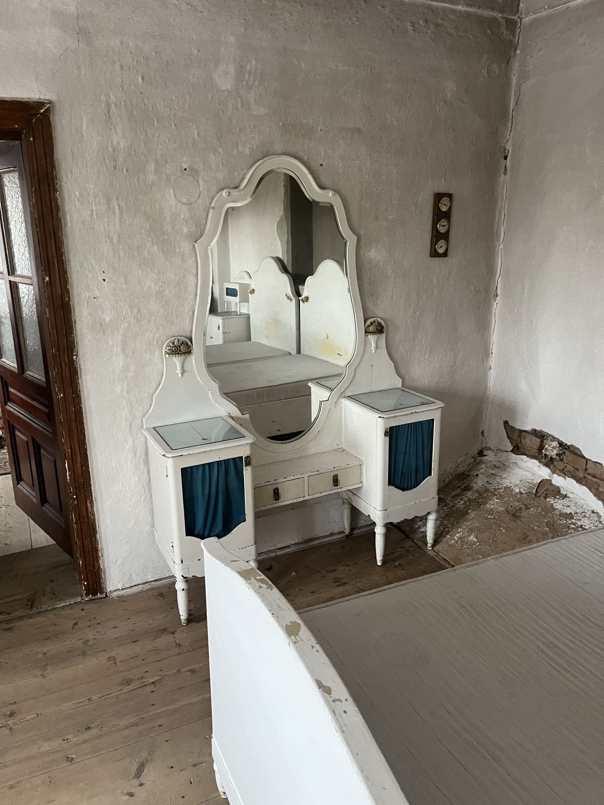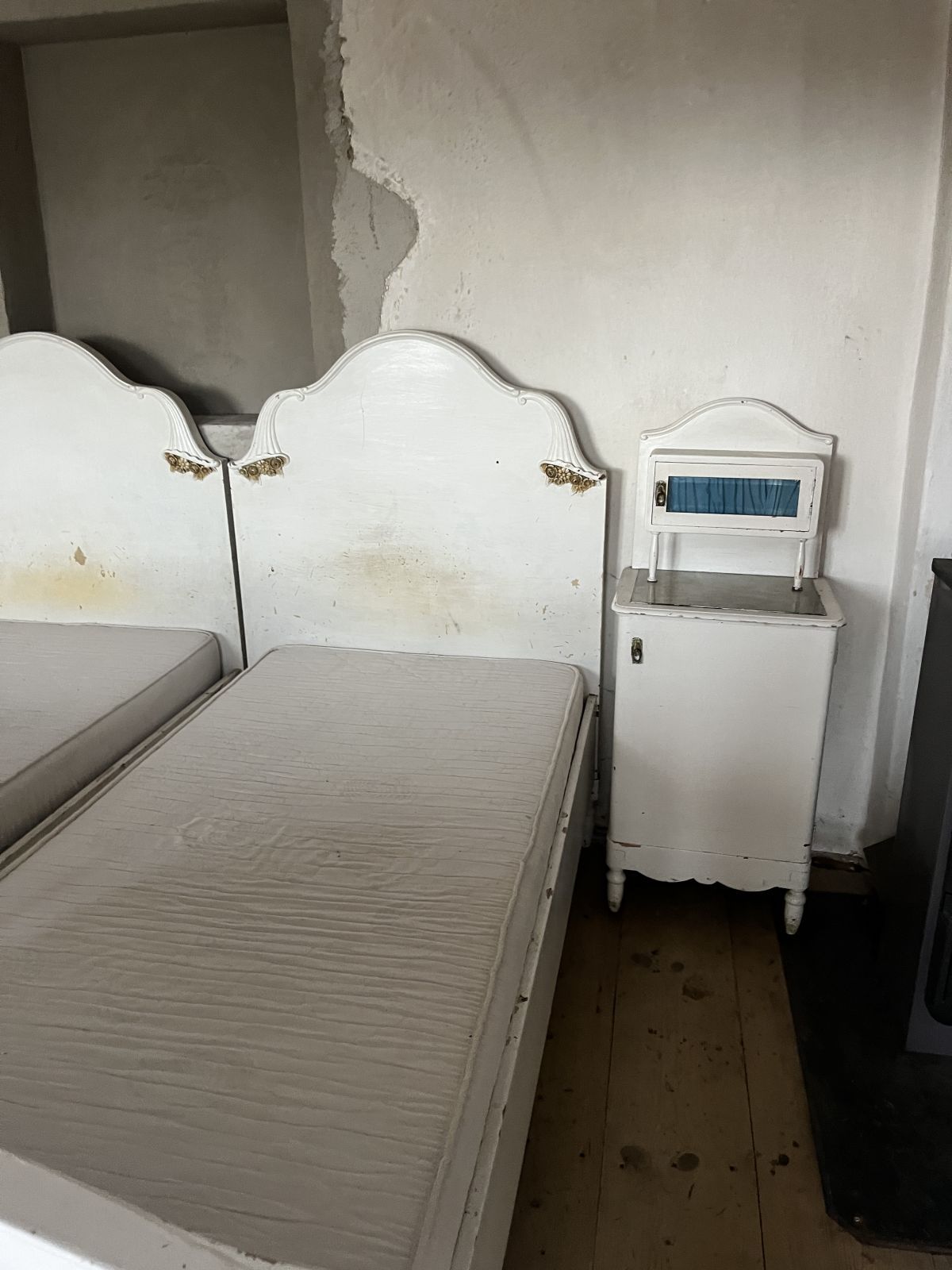 Dvě postele, dva noční stolky, dvě skříně, zrcadlo velké.