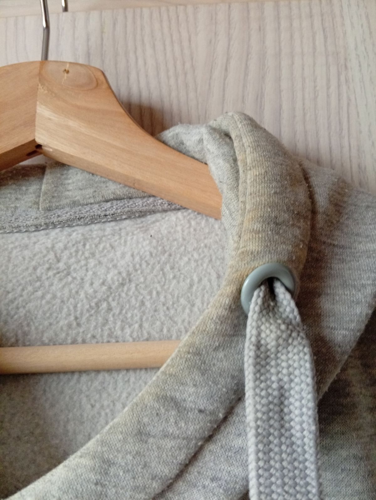 Zažloutlý kraj kapuce. Myslím, půjde vyprat.