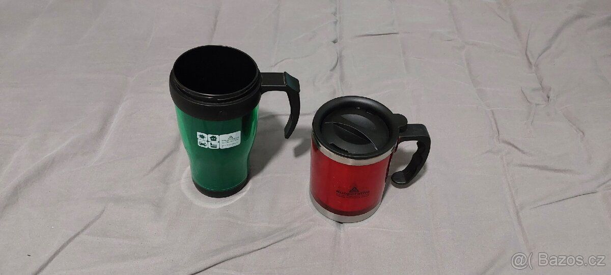 Daruji za odvoz dva termohrnky, červeny je kompletní a zelený bez víčka.