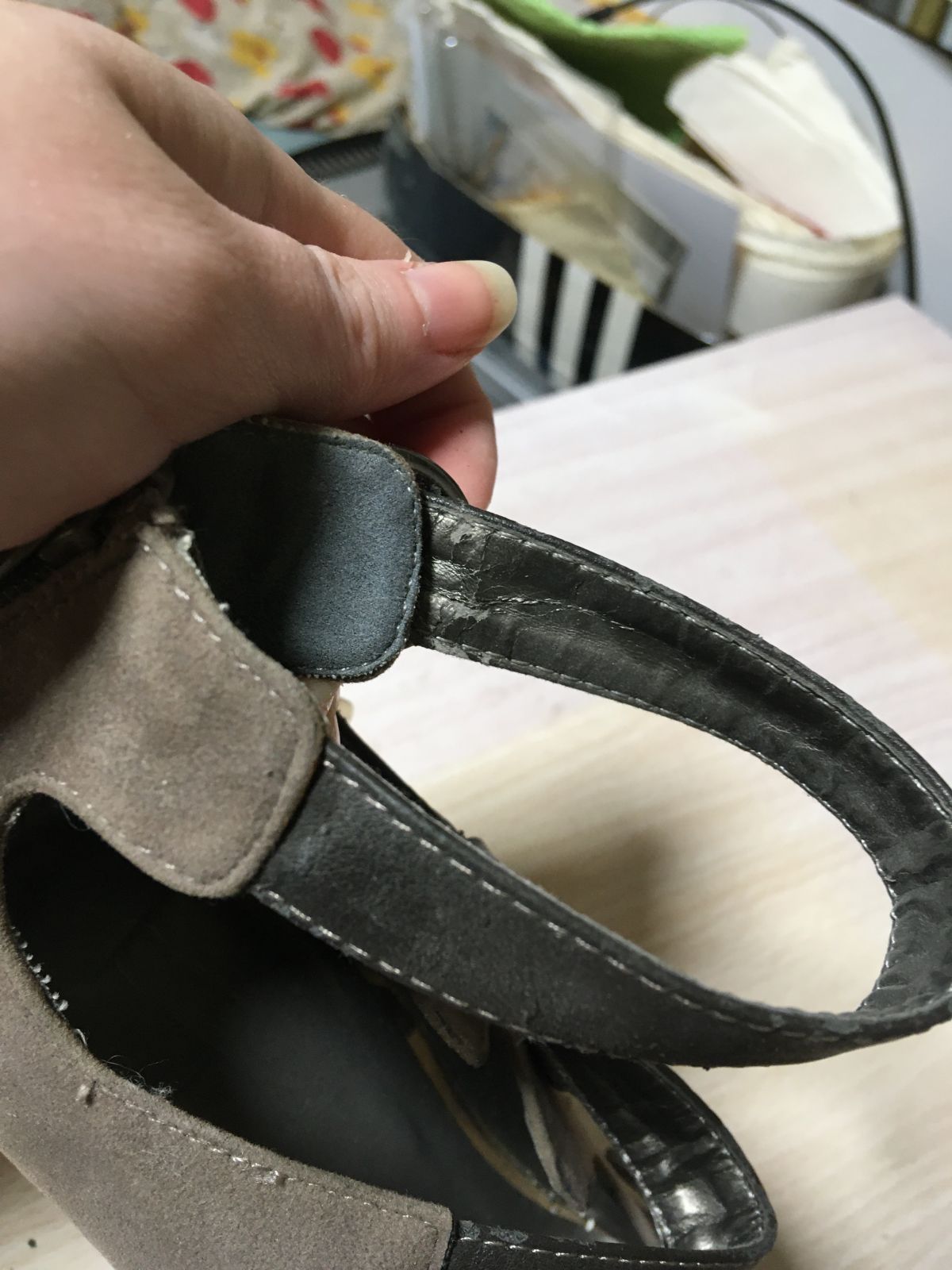 U jednoho pásku se malinko loupe a trochu poškrábané podpatky