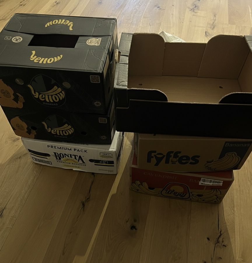 Daruji za odvoz 5x krabice od bananů a jednu krabicovou přepravku