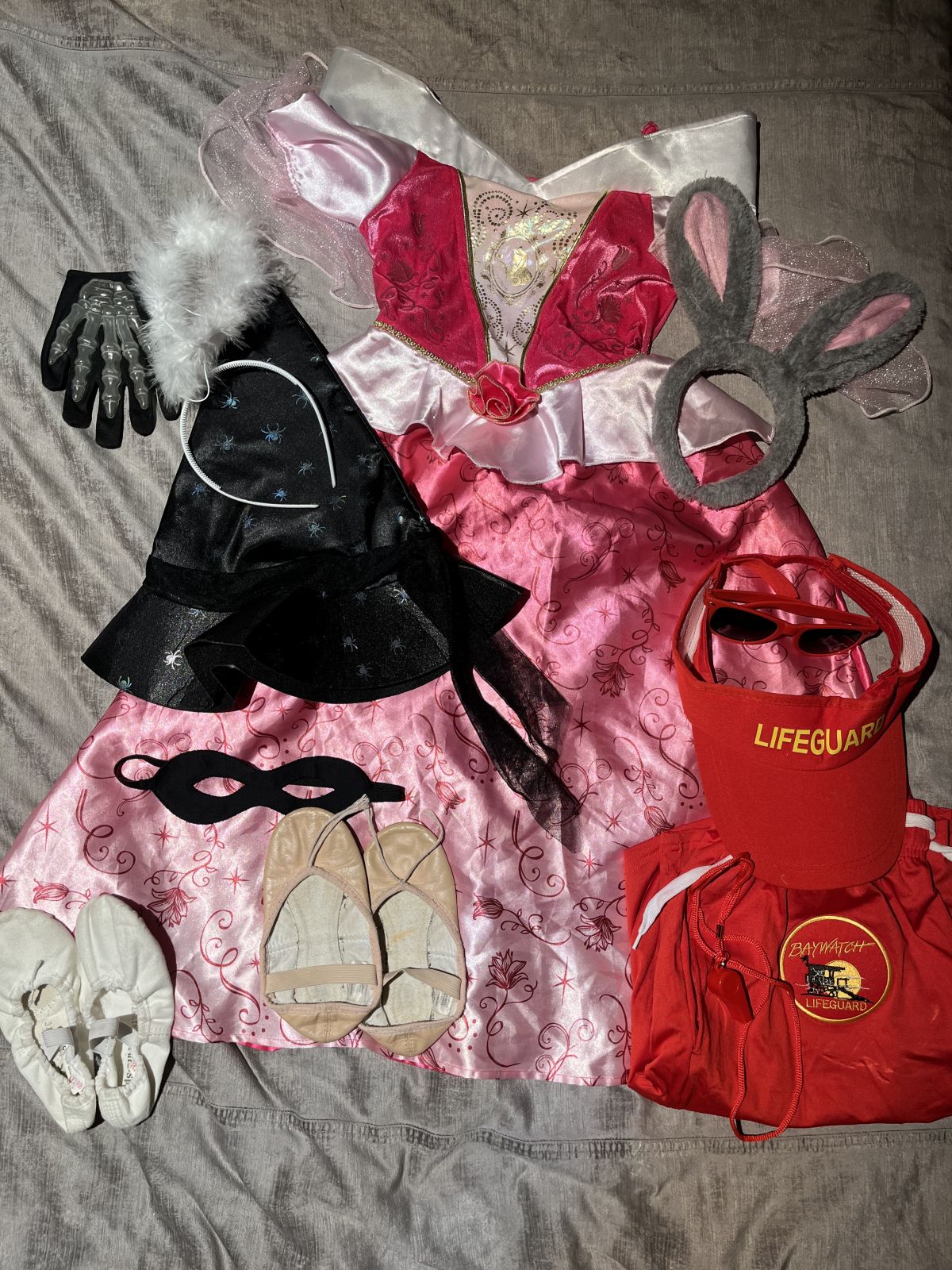 Daruji za odvoz převlek princezna pro děti a plavčík baywatch pro dospělého, čarodějnický klobouk, zaječí uši