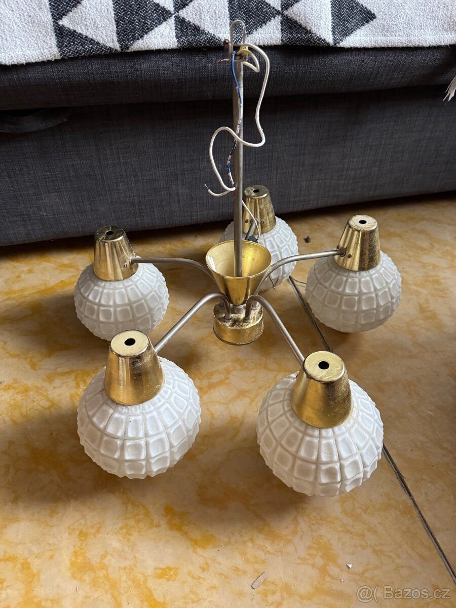 retro stropní lustr z období 60.–80. let.