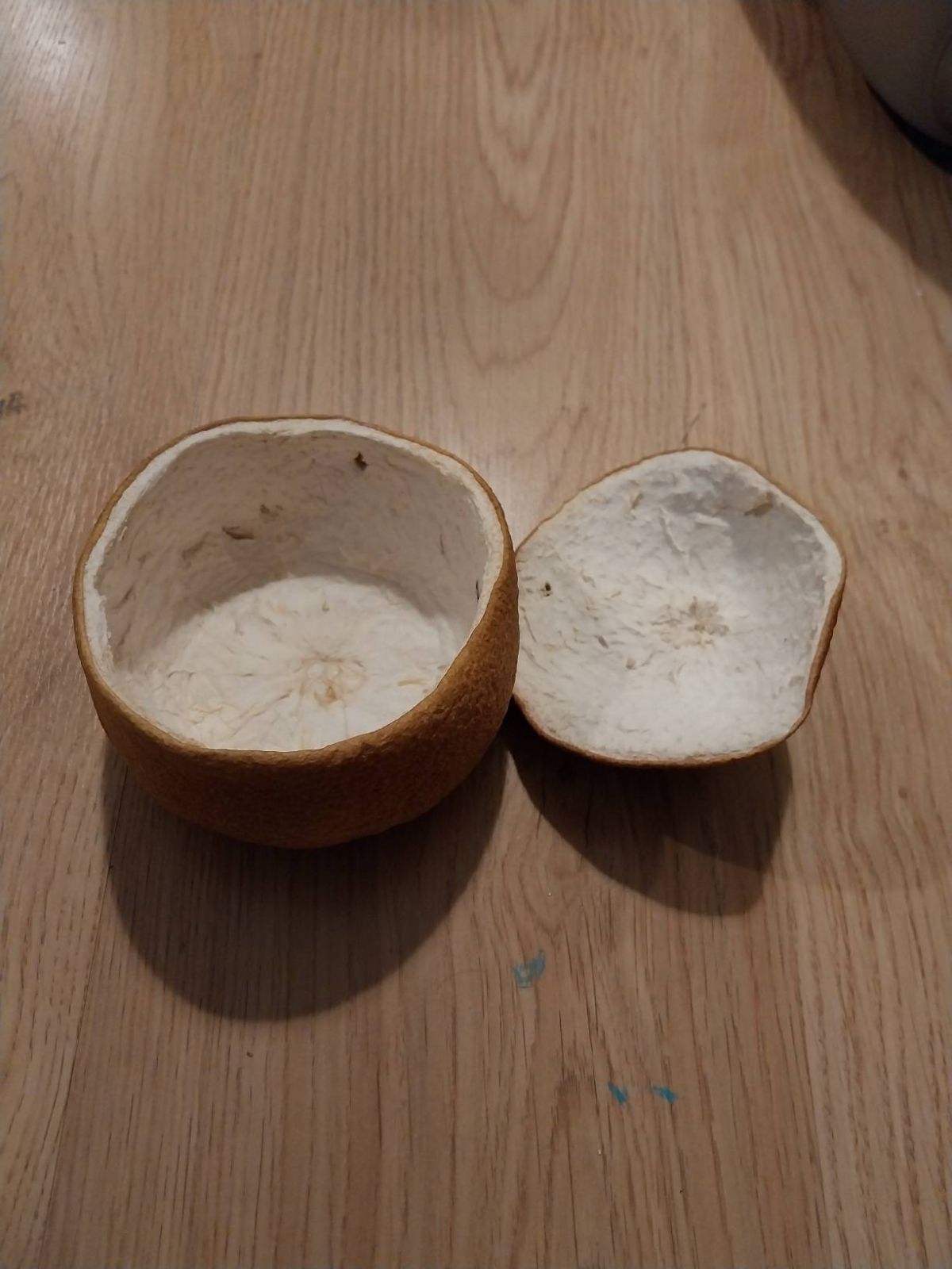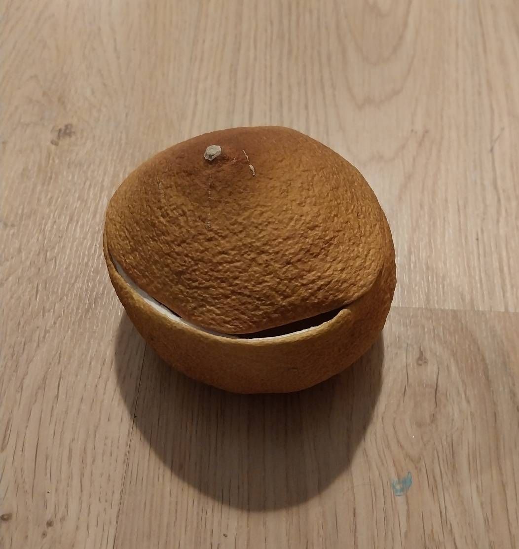 Uděláno z vysušené slupky pomela, zhruba v rozměru menšího pomela. Vhodné k ukládání drobností. V případě zájmu prosím rovnou napište časové možnosti vyzvednutí.