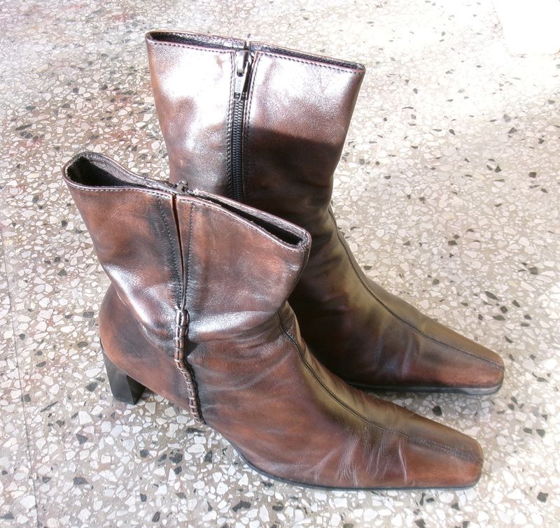 Daruji za odvoz kožené boty na vysokém podpadku s úzkou dlouhou špicí. Nově podražené, nezateplené.