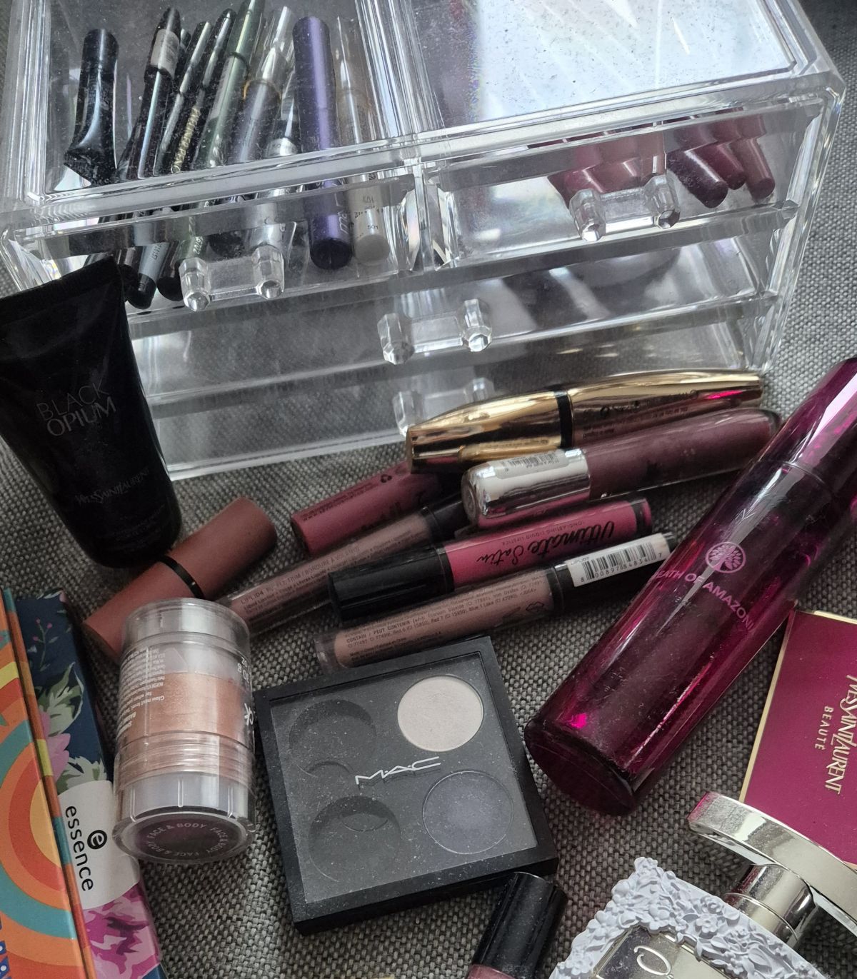 Daruji menší tašku různého makeupu a kosmetiky, jsou tam stíny, rtěnky, parfém větší plastový pořadač se šuplíky na makeup atd, dle fotky. Předání okolí Thomayerky.