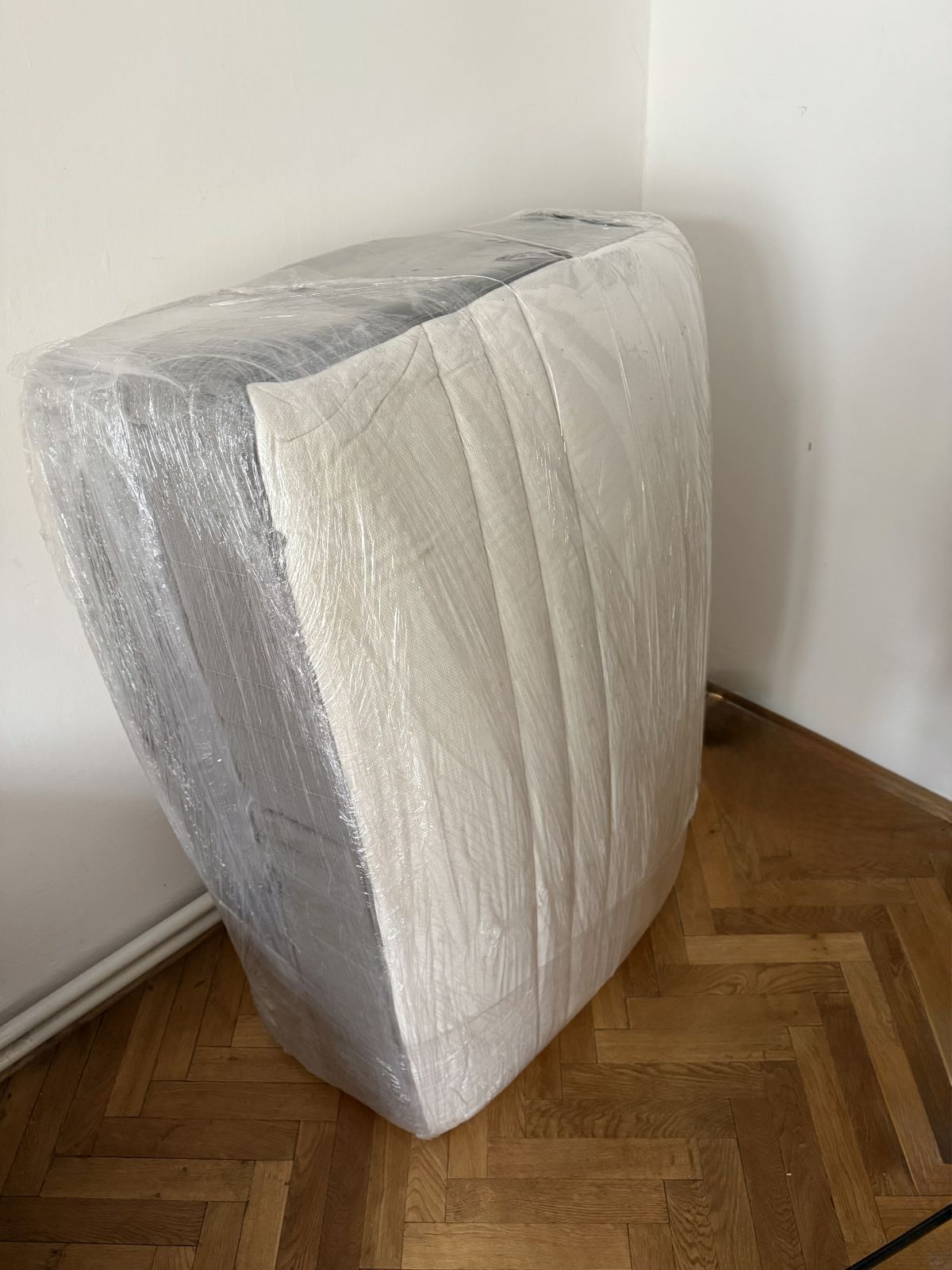 Používaná, takto zabalená přeložená napůl pro snadnější přepravu.