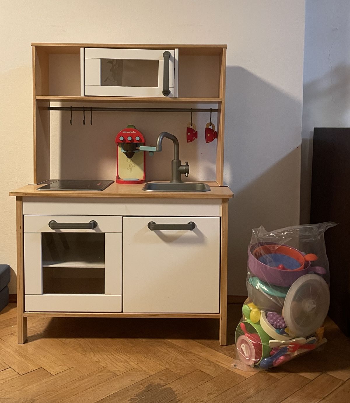Daruji za odvoz dětskou kuchyňku (IKEA) s pytlem vybavení, vesměs plastového. Kuchyňka nese známky používání a nefunguje světélko ve sporáku. Jinak je bez závad a naše dítě si s ní do nedávna spokojeně hrálo.