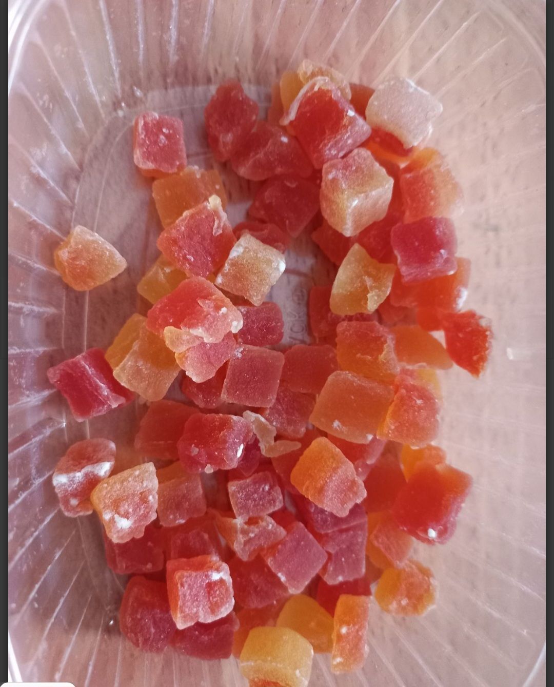 Daruji za odvoz dovezené v létě. Snědla jsem cca 1/2. Snažím se nyní omezit sladké
