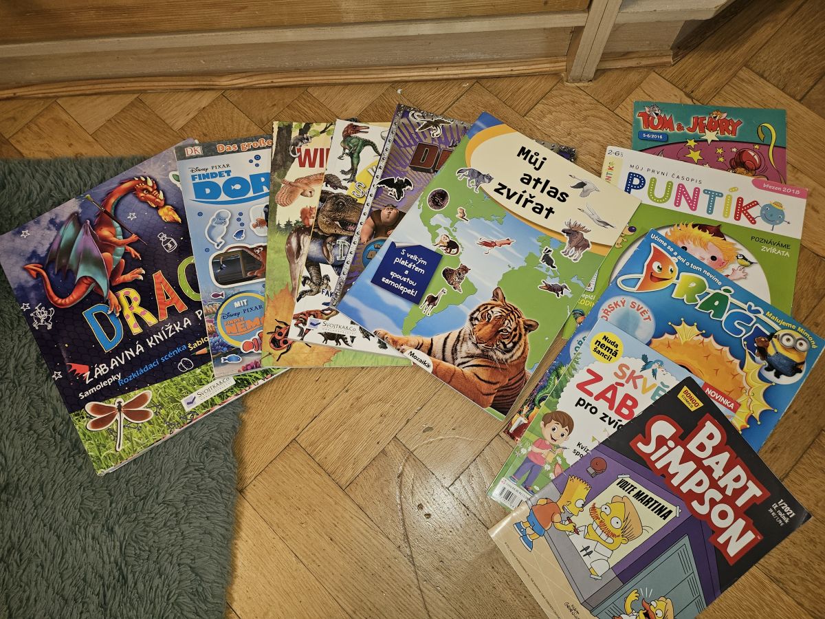 Daruji za odvoz dětské časopisy a samolepkové knížky. Něco nalepeno, ale ještě spousty zábavy zbývá. Různé čtění, kvízy atd.
