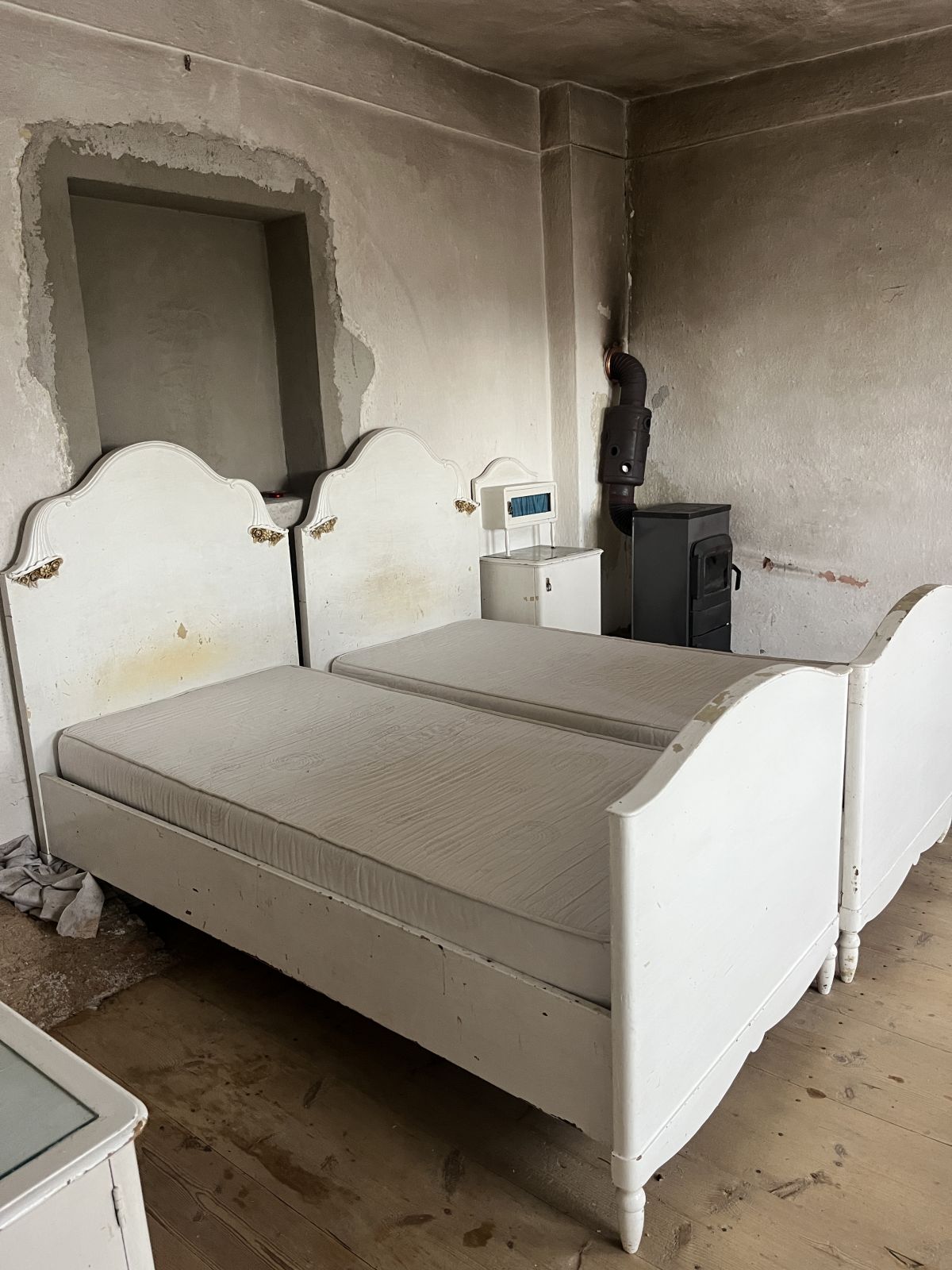 Postele, matrace, koberec, kamna