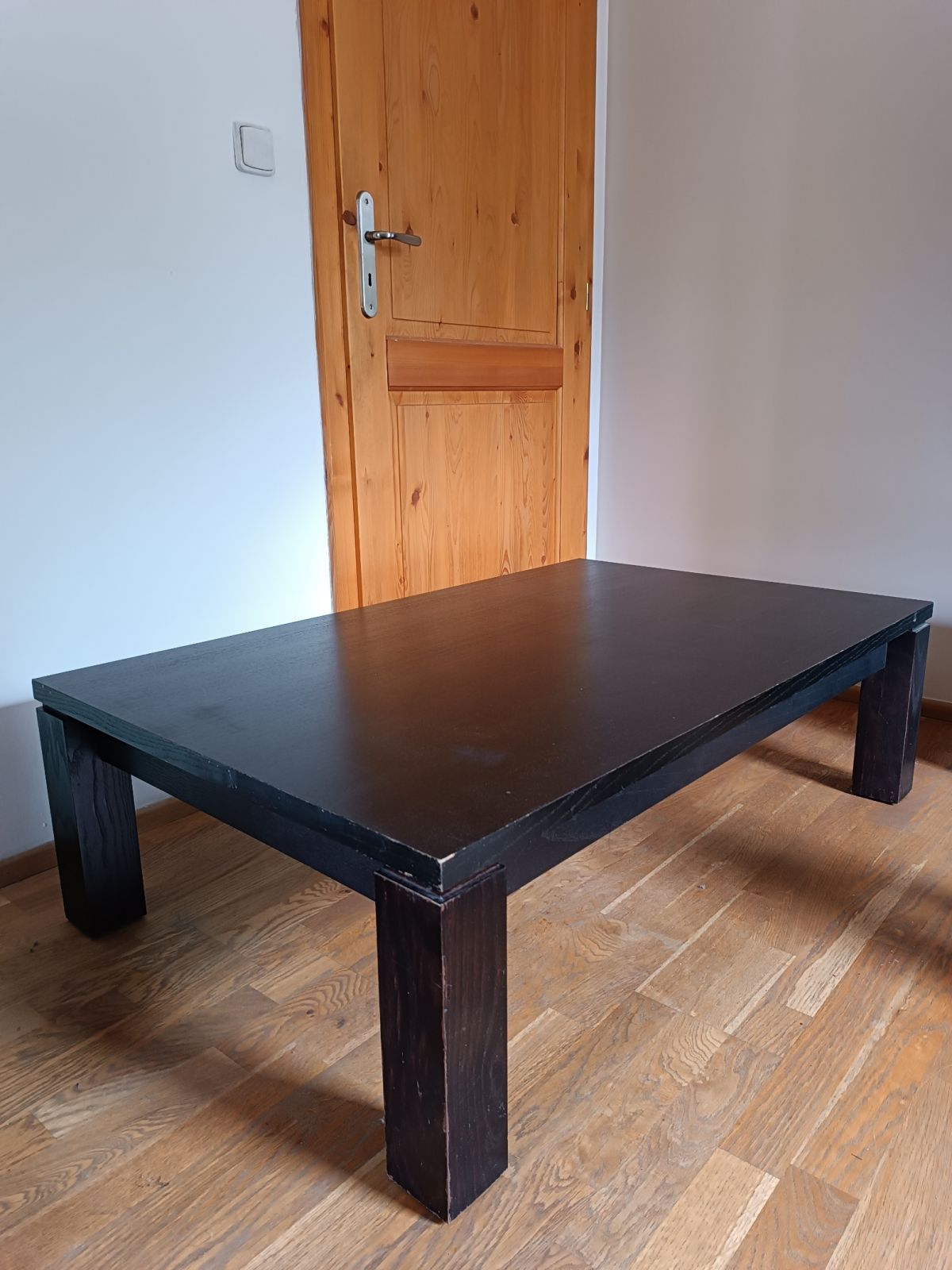 Daruji za odvoz konferenční stolek z masivu, černá barva, 80x130 cm, výška 38 centimetrů. Lehké opotřebení - místy drobné rýhy a oděrky, jinak velmi dobrý stav, nerozviklaný.