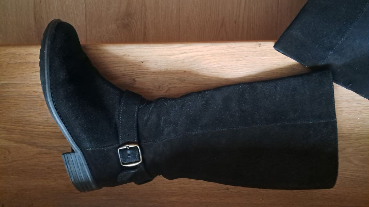 Daruji za odvoz kožené černé semišové kozačky vel 38. Spíše na donoseni v suchu, pravá podrážka je cca 2 cm pukla.