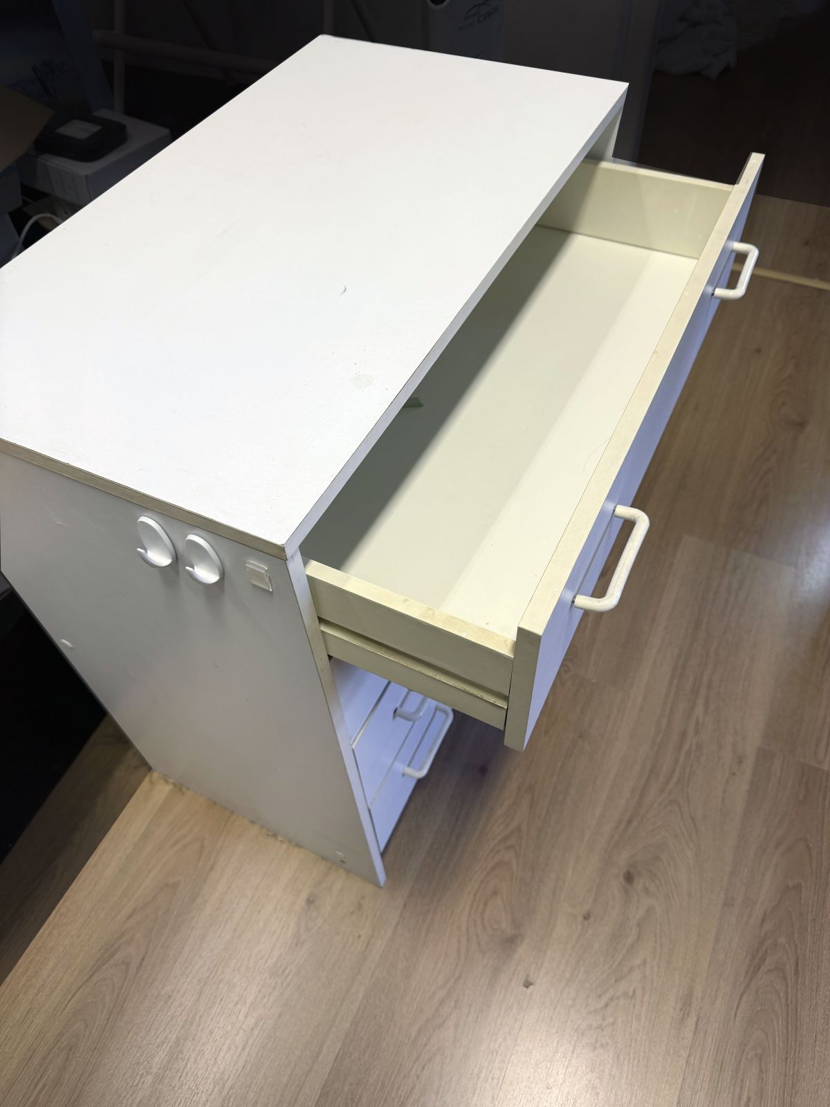 Malá bila šupliková komoda -použivána /ale službu ještě uděla/