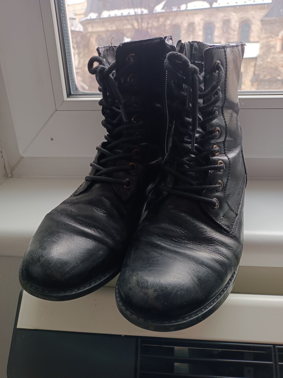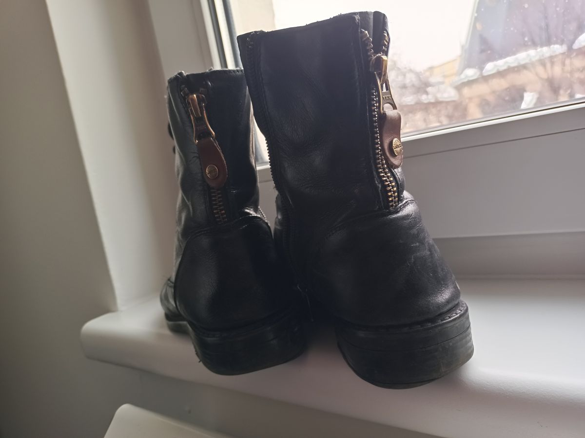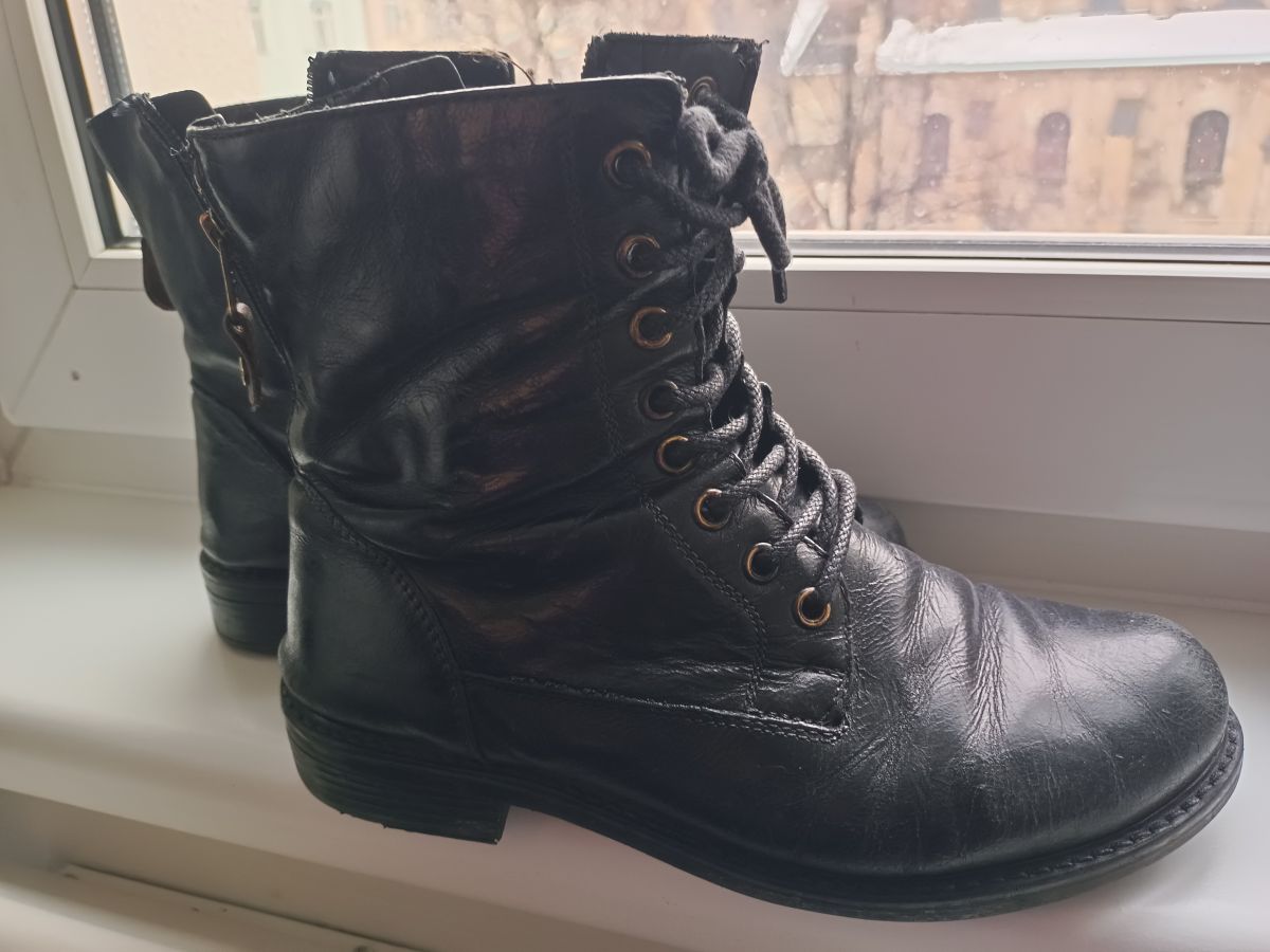 Kožené boty značky Lasocky, velikost uvedena 37, ale všechny boty nosím vel. 38 a sedí perfektně. Boty jsou již značně používané, jsou spíš na donošení. Jsou pohodlné, uvnitř koženka popraskala a podrážky jsou sešláplé k jedné straně. Po vyleštění vypadají ještě pěkně, ale opravdu se jedná spíše o boty na donošení, jsou nošené asi 2 roky.