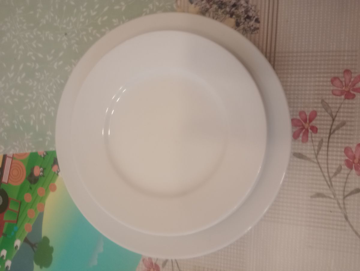 Dva velké mělké talíře IKEA a tři menší, ale jsou větší než dezertní. Já používala pro sebe jako obědové a větší pro manžela 😎. Možné přidat nůž.