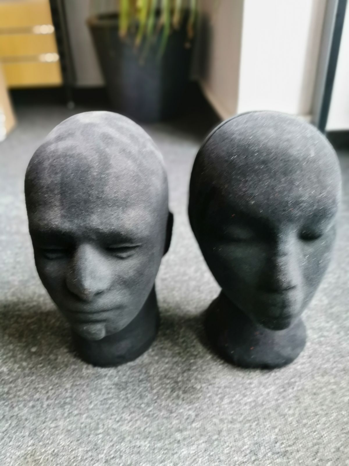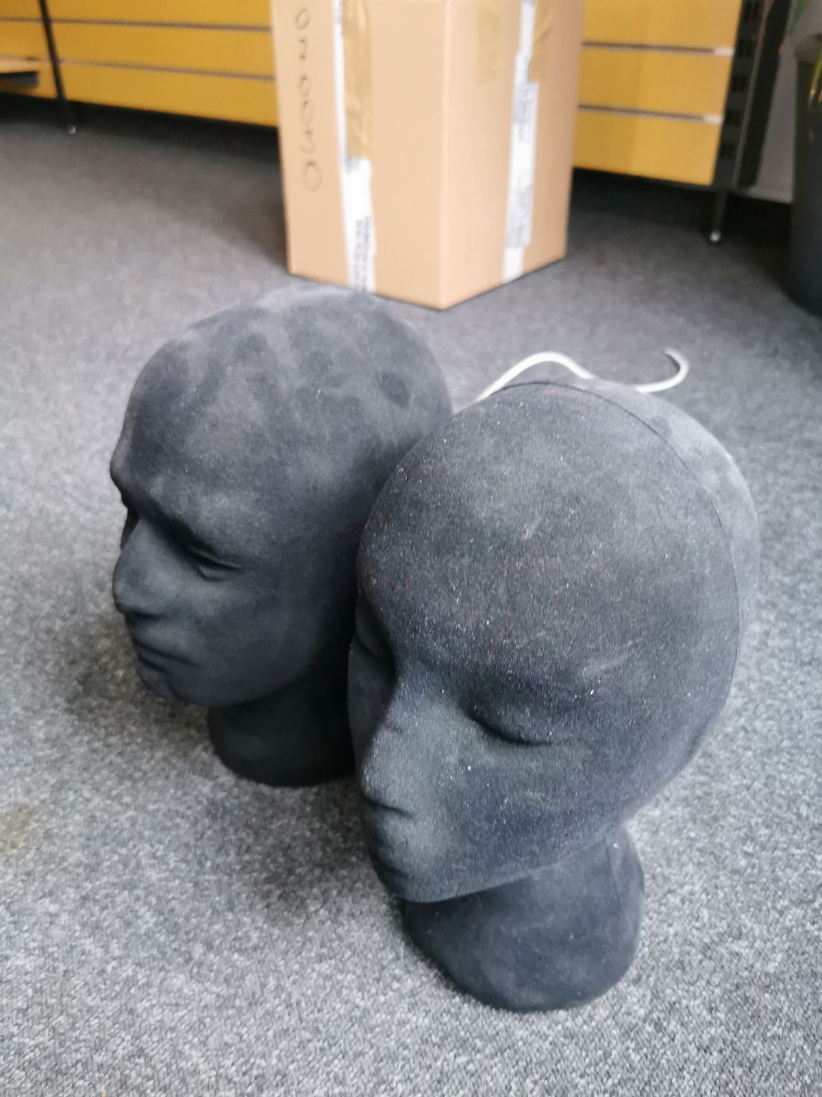 Daruji za odvoz 2 polystyrénové černé hlavy, výška 28 cm, při manipulaci trochu špiní. Pouze osobní odběr od 10.00.-.16.00, na Karlínském nám.5, rychlé jednání