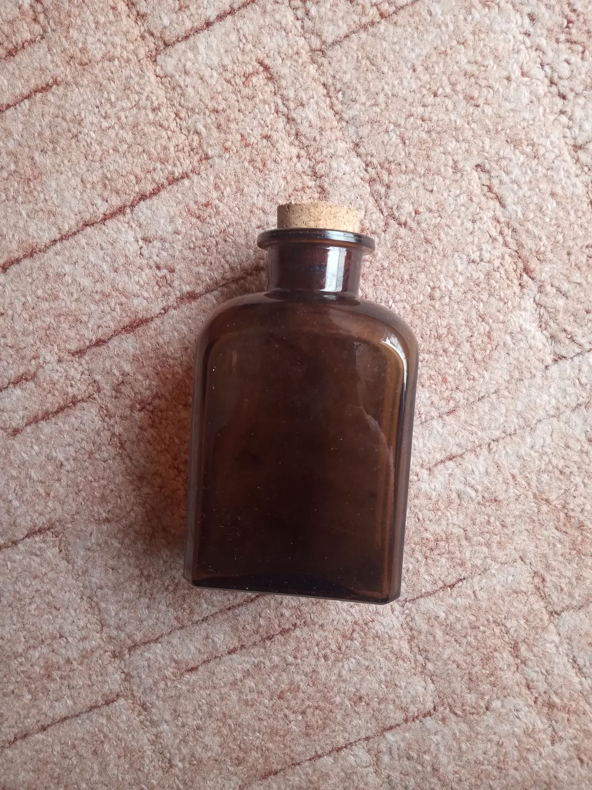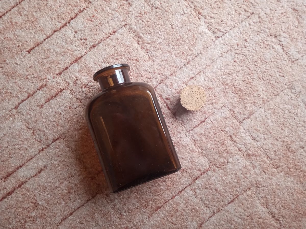 Daruji láhev z tmavého skla. Uzavírá se špuntem. Původně v ní byly nějaké prášky. Teď už je dlouho prázdná.