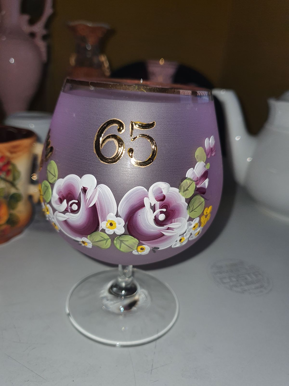 Daruji za odvoz ručně malovaná sklenice, narozeninova. 65