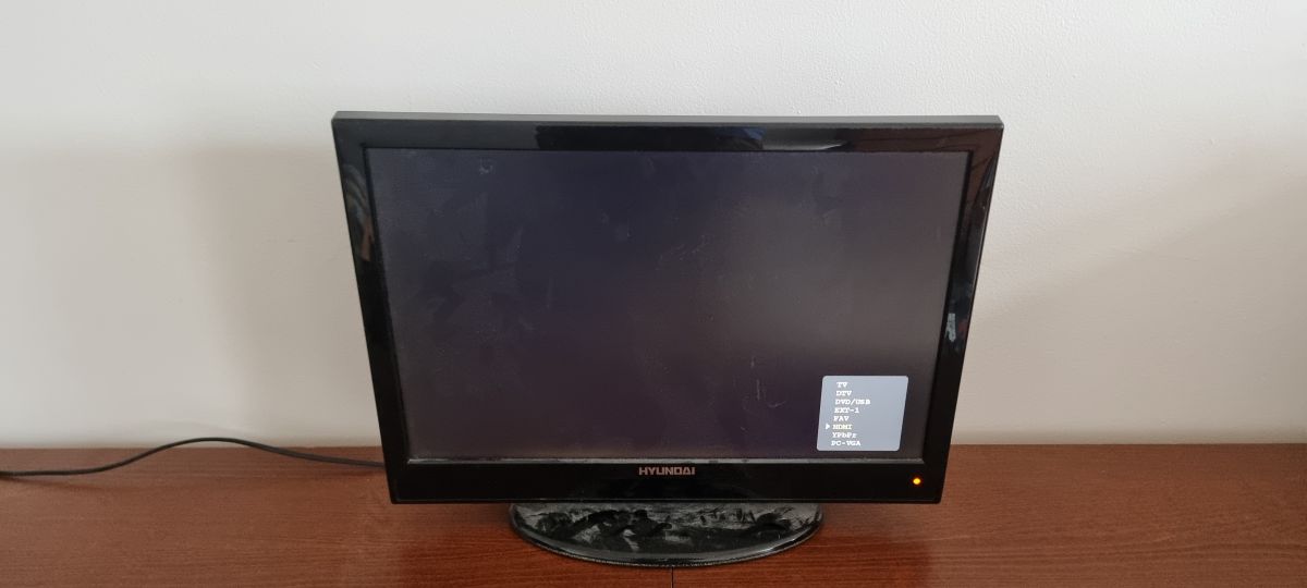 Daruji za odvoz. Starší televize Hyundai, funkční, používaná ale jen jako monitor přes HDMI kabel. Netuším jaký bude mít standard vysílání a nemám k ní ani ovladač.
