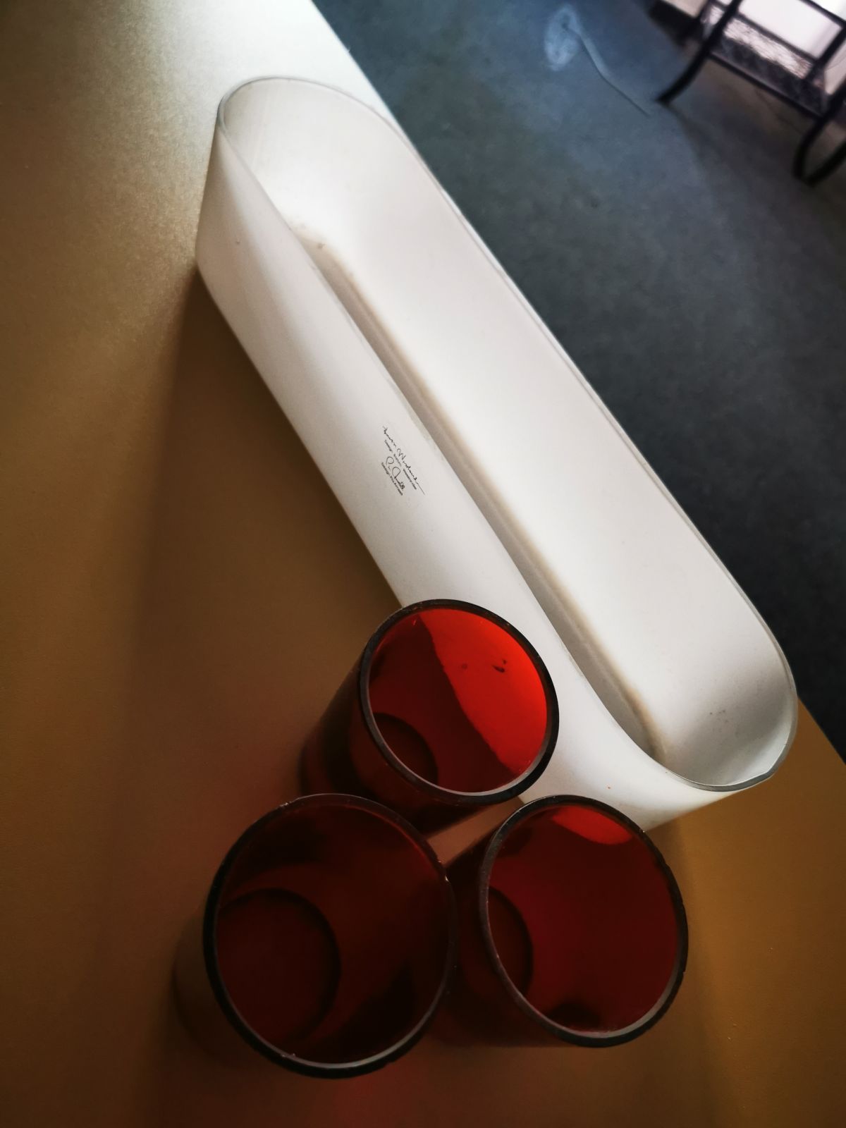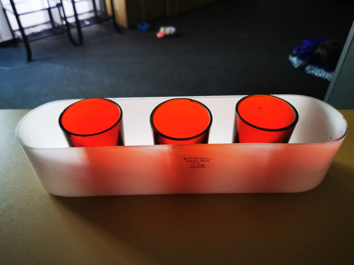 Daruji za odvoz skleněný ovál mléčné sklo + 3 nádobky na svíčku červené