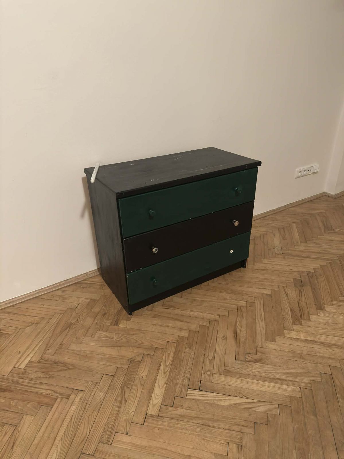 Daruji za odvoz skřínku s třemi šuplíky. Je uz dost použitá a poslední šuplík moc nešuplíkuje. Barva je hodně poškrábaná. Chybí jedno madlo.