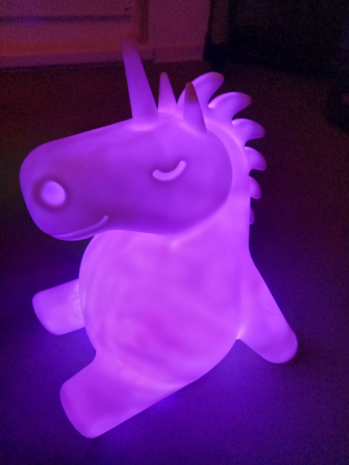 Daruji za odvoz lampicku ve tvaru jednorozce. Na baterie (nejsou soucasti), svetlo meni barvy.