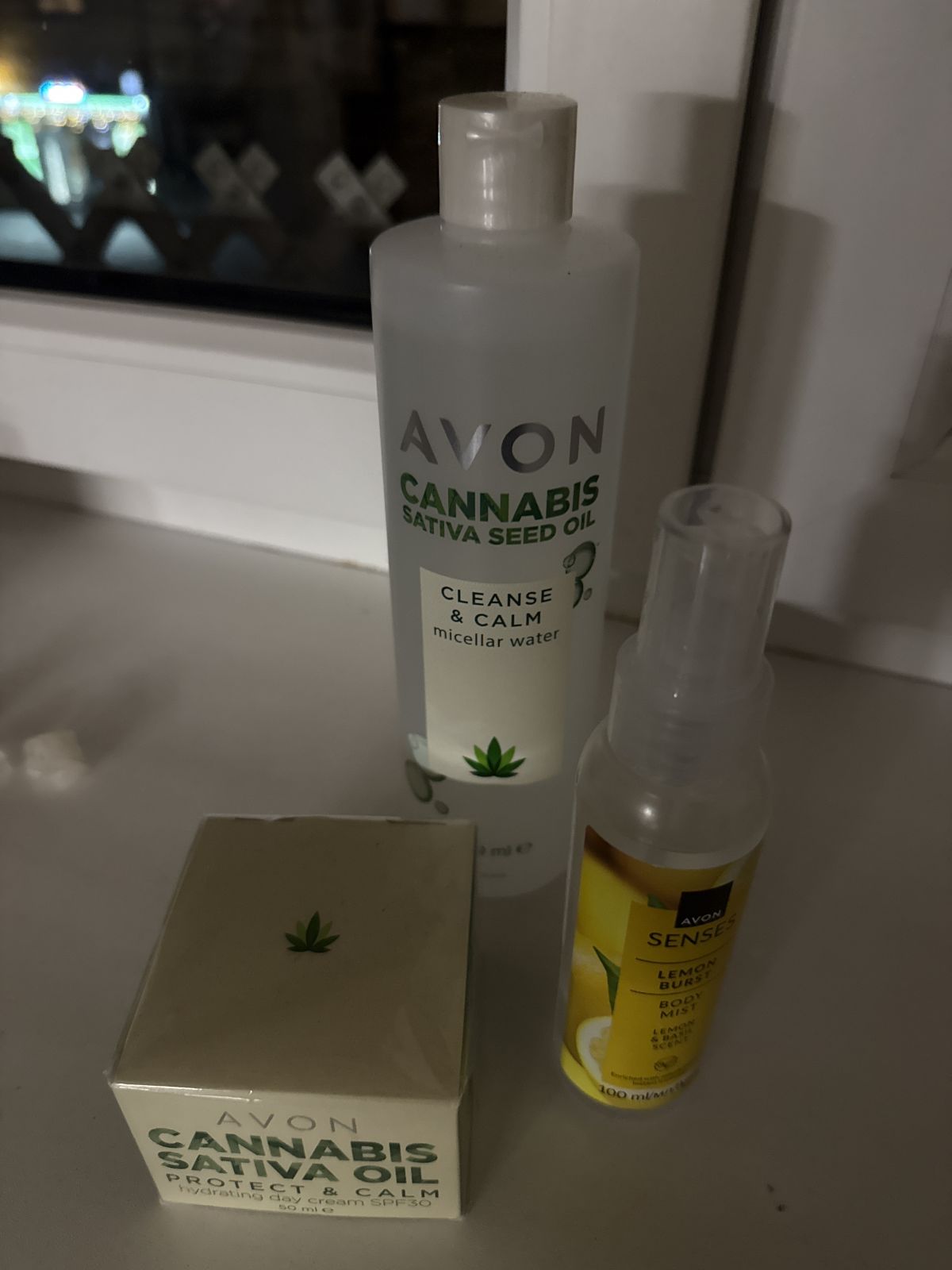 Jsou tam dále šampon, sprcháč a další věci z avonu