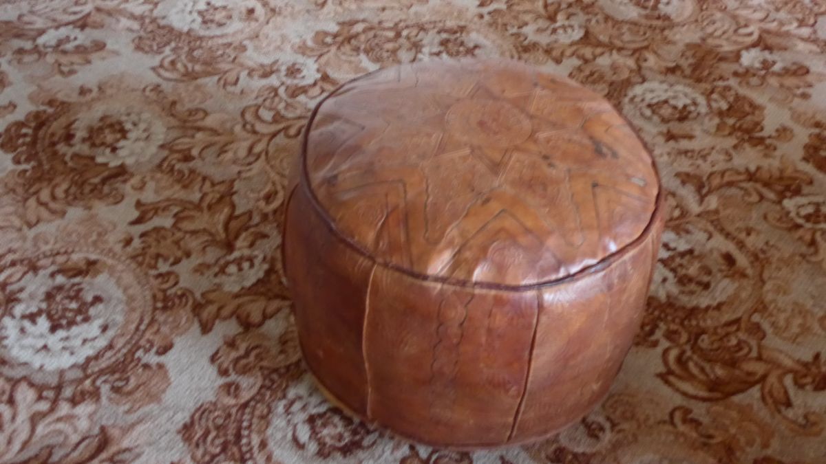 Daruji za odvoz taburet s vytlačovaným orientálním vzorem. Starší. Pravděpodobně kůže.