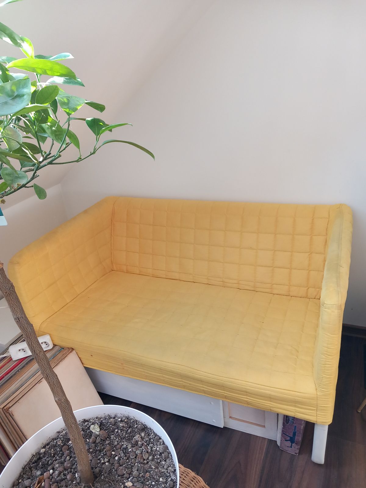 Daruji za odvoz žlutou pohovku. Naprosto v pořádku. Akorát vyšisovaný potah na opěrkach. K dispozici jen zítra večer. Praha 8 Libeň.