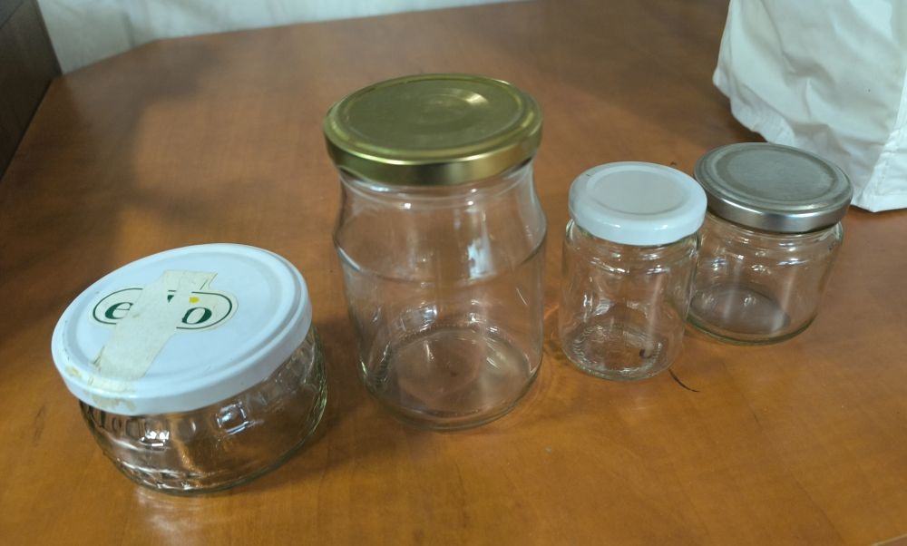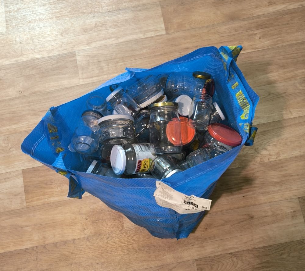 Daruji za odvoz kabelu plnou šroubovacích sklenic - čisté a umyté
