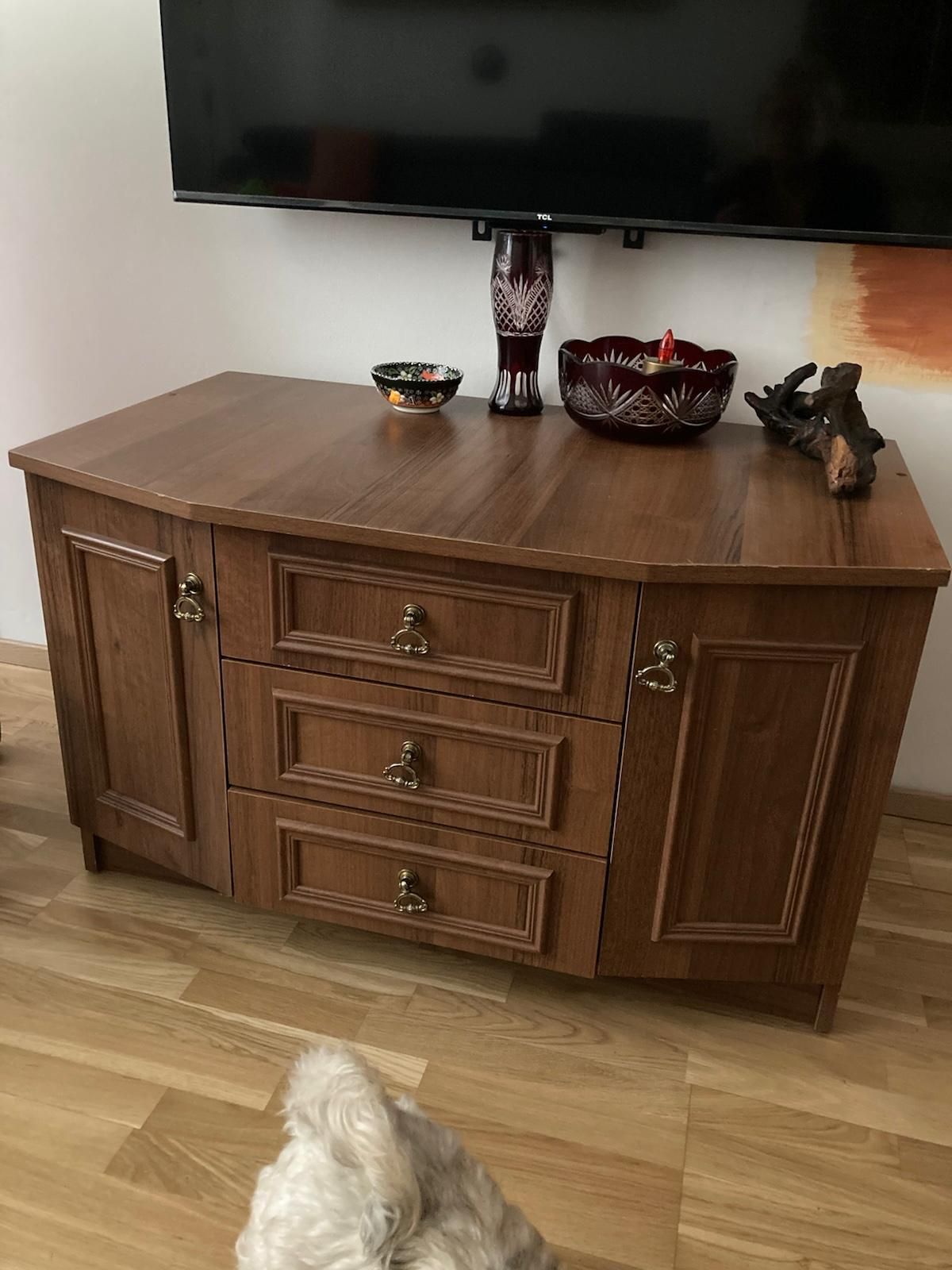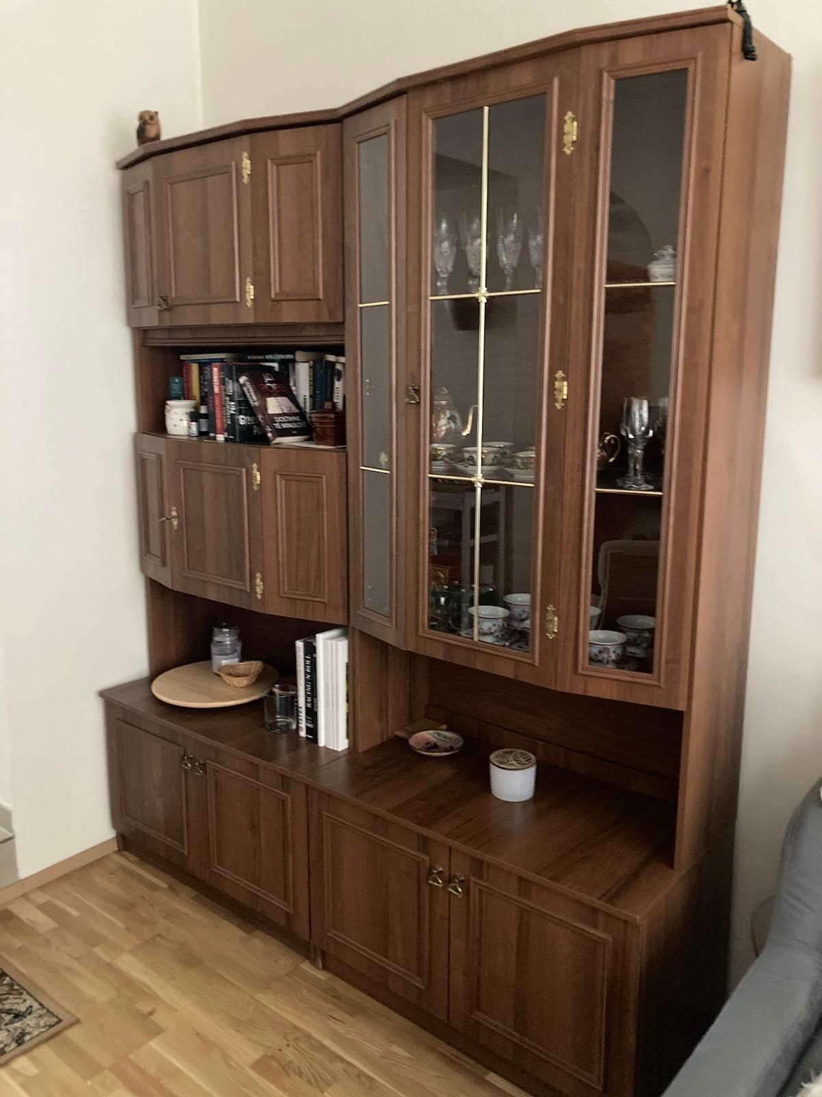 Skříně jsou dvojdílné, spodní stolek a nástavba.