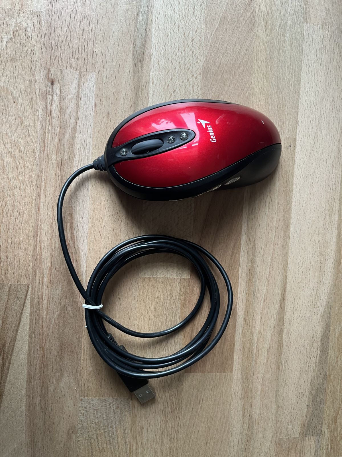 Daruji za odvoz USB myš značky Genius. Včetně tlačítek Vpřed a Zpět. Multimediální tlačítka (Play/Pause, Vol+, Vol-) jsou ošoupaná ale funkční.