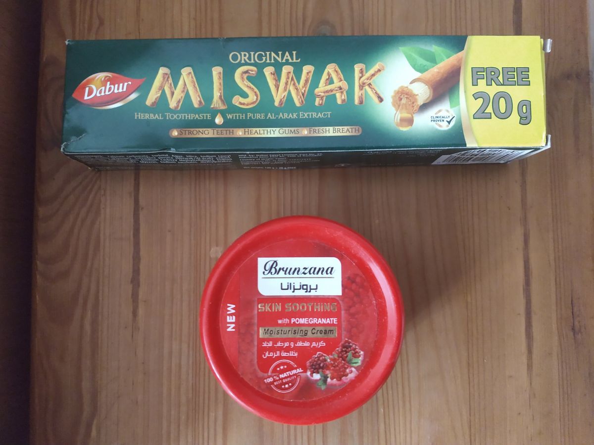 Bylinná zubní pasta a vyživující krém. Nepoužité, nevhodný dárek. Vyzvednutí v ulici Sámova, Praha 10.