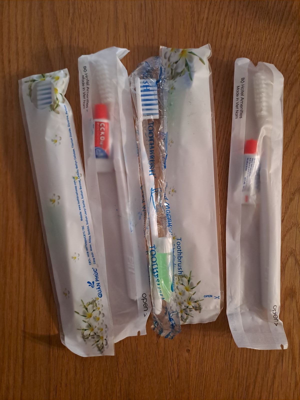 Daruji za odvoz 5 balení kartáčků tzv. na jedno použití. Jsou to klasická hotelová balení kartáčků, každé balení má i malou tubu se zubní pastou.