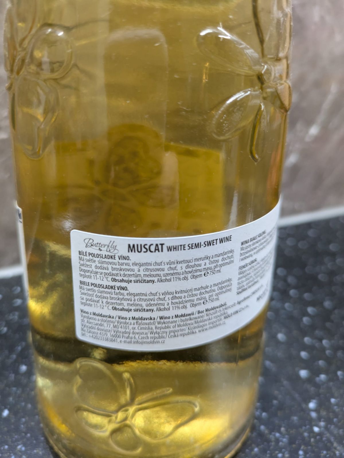 Daruji za odvoz bílé víno muškát. Pozor, je prošlé, viz etiketa na fotce.