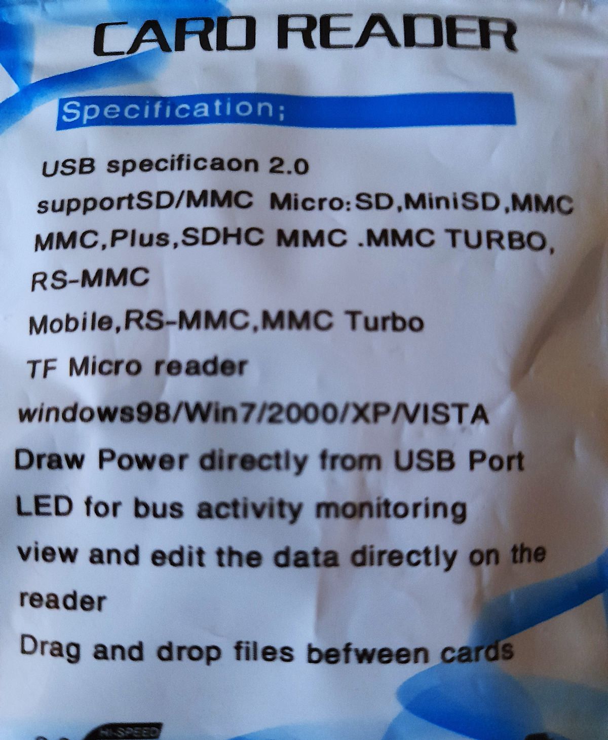Daruji za odvoz tuto čtečku karet, podporuje starší verze Windows.