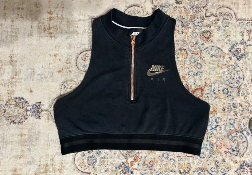 Krátký top na cvičení nebo sportovní podprsenka Nike Air, černá je trochu vybledlá praním. Horní Počernice.