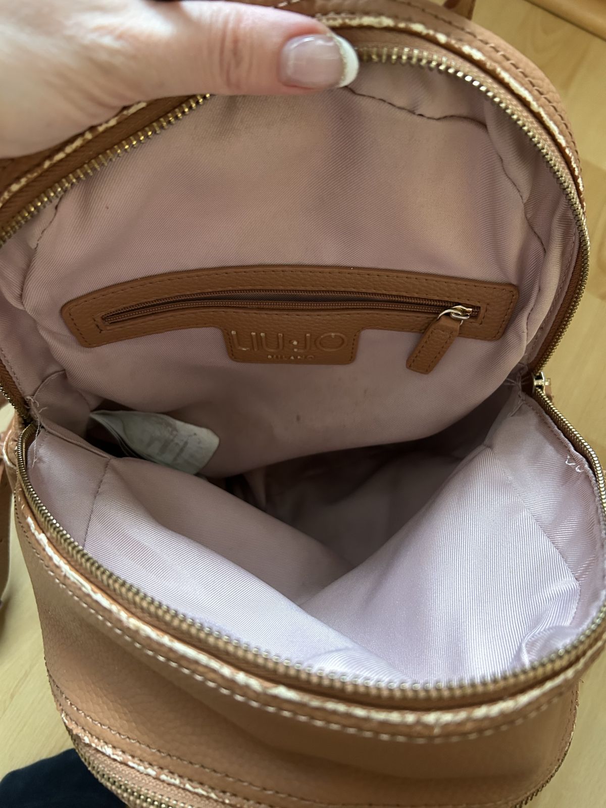Daruji za odvoz batoh Liu Jo, funkční zipy, nedostatky jsou vyfoceny - je odřený u zipů a zezadu u popruhů. Rozměry 32x22cm.