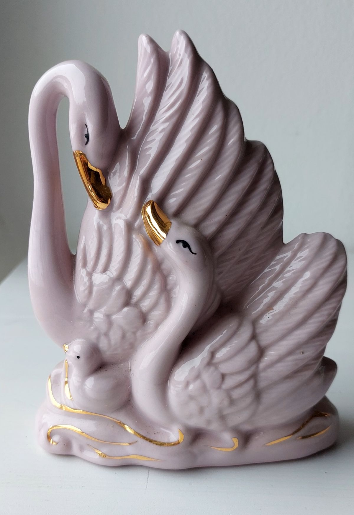 Daruji dekoraci, porcelánovou sošku labutí rodinky, růžová, výška 16 cm, možnost předání Praha 1, Praha 6
