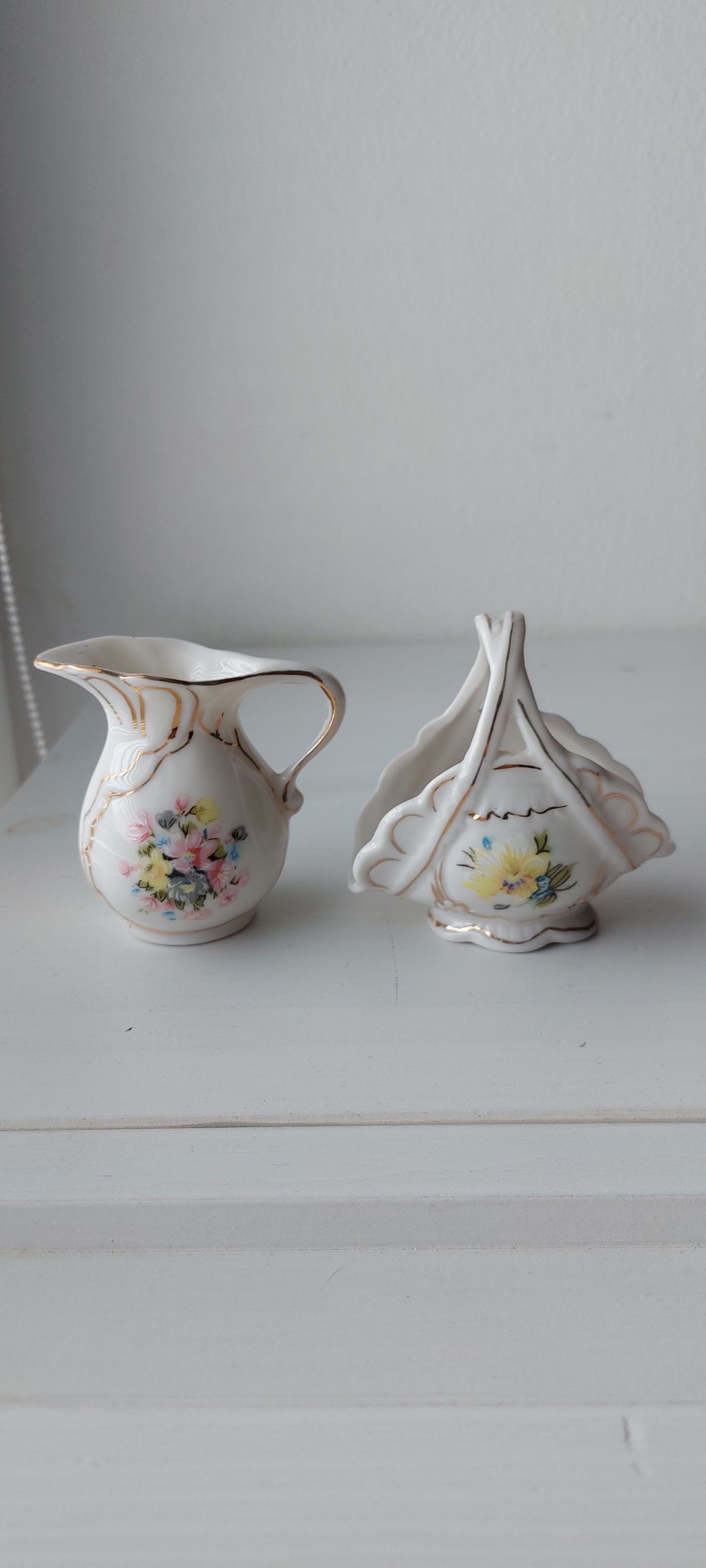Daruji porcelánovou konvičku a košík, výška 7 cm, bílá barva, květinový obtisk, bez závad, předání možné Praha 1, Praha 6