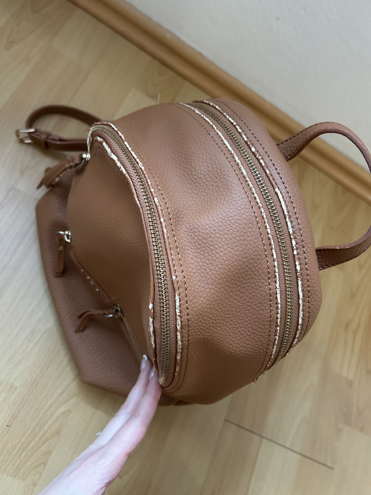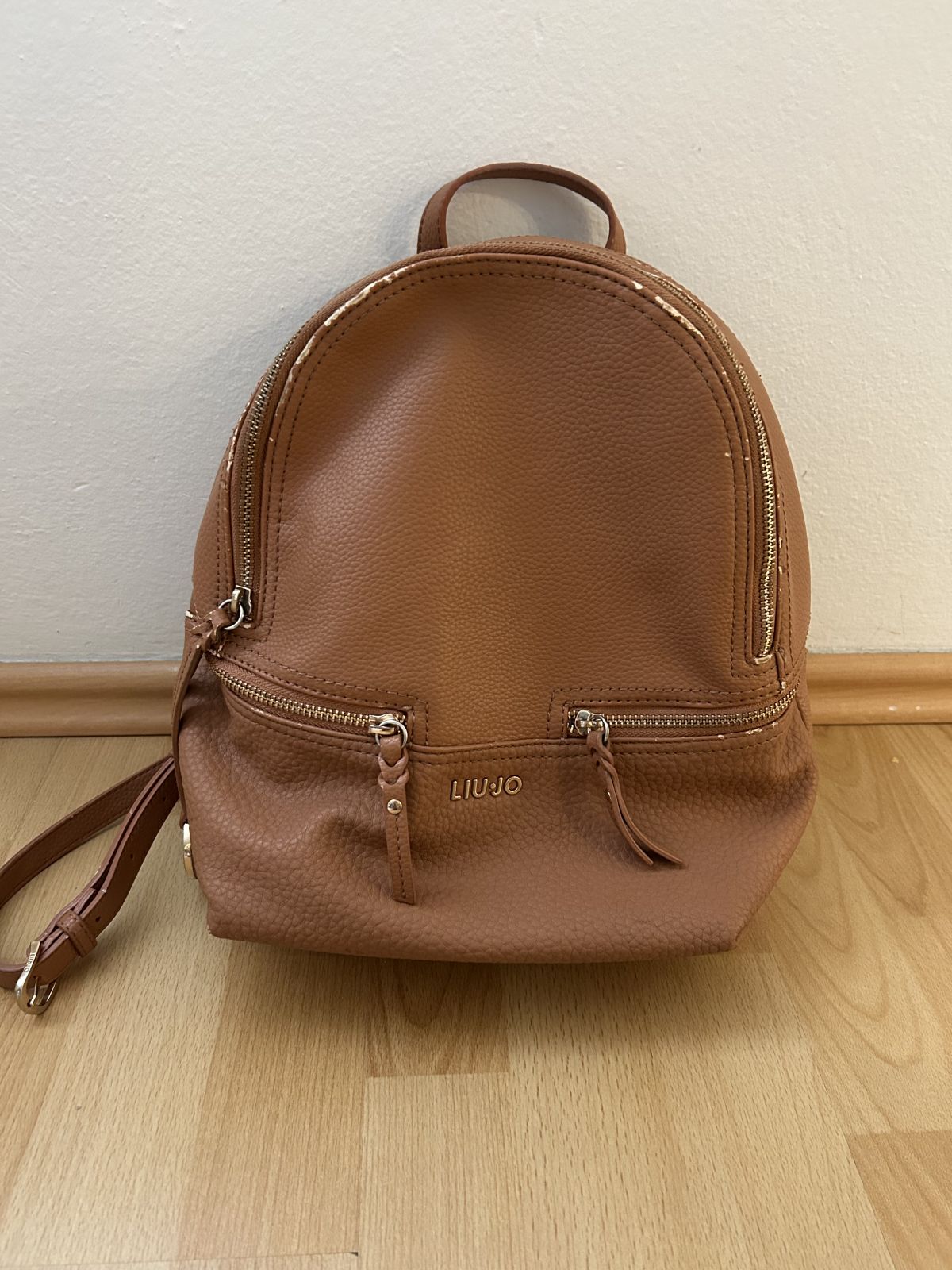 Daruji za odvoz dámský batoh Liu Jo, funkční zipy, nedostatky jsou vyfoceny - je odřený u zipů a zezadu u popruhů. Rozměry 32x22cm.
