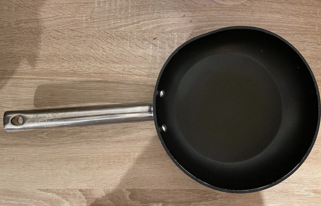 Daruji za odvoz s mírným poškozením teflonu na několika místech a pod pokličkou. Tato ma poškození tvaru od pádu, na funkci nemá vliv, jen nejde nasadit poklička.