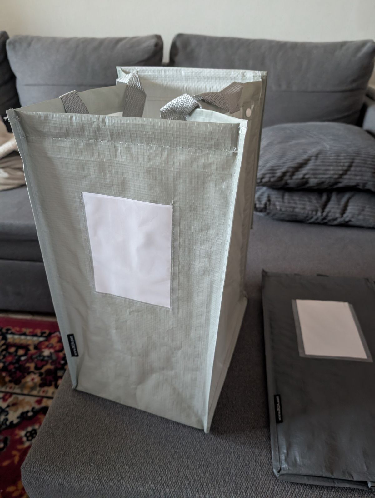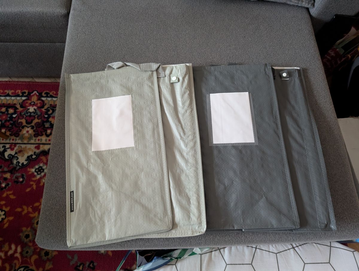 Daruji za odvoz dve tašky na tříděný odpad. Dají se k sobě cvaknout a mají vyztužení, aby stály samostatně.