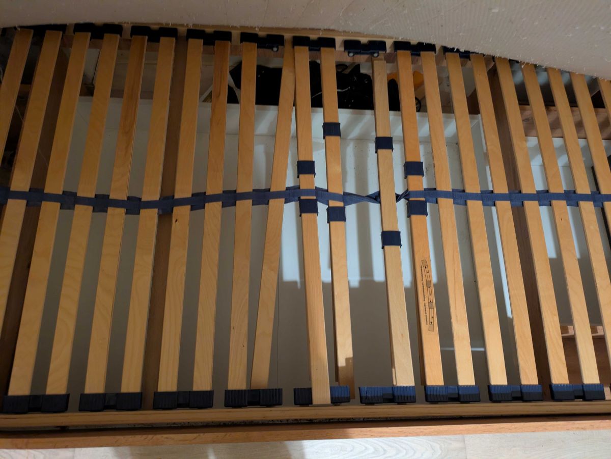 Daruji za odvoz jednolůžkovou postel s matrací, bohužel má POŠKOZENÉ ROŠTY, ale zručný kutil by je zvládl opravit.