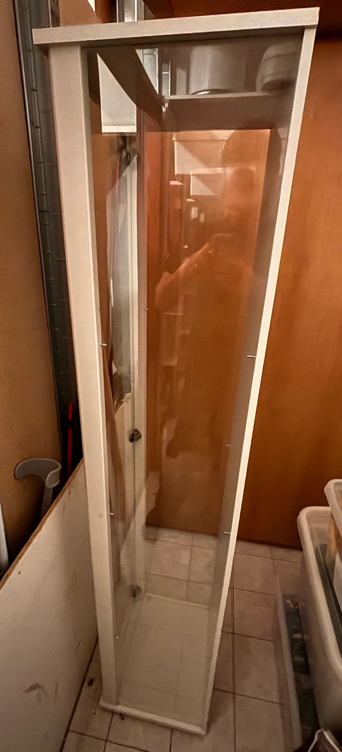Daruji za odvoz skleněnou vitrínu, včetně tří skleněných poliček. Bílý dekor, rozměry 170 cm x 42 cm x 36 vm (v x š x h). Vypadá bez poškození.
