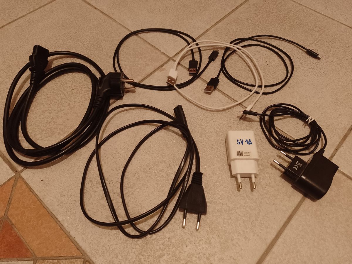 Daruji za odvoz různé kabely - napájecí i datové- a dvě nabíječky.
