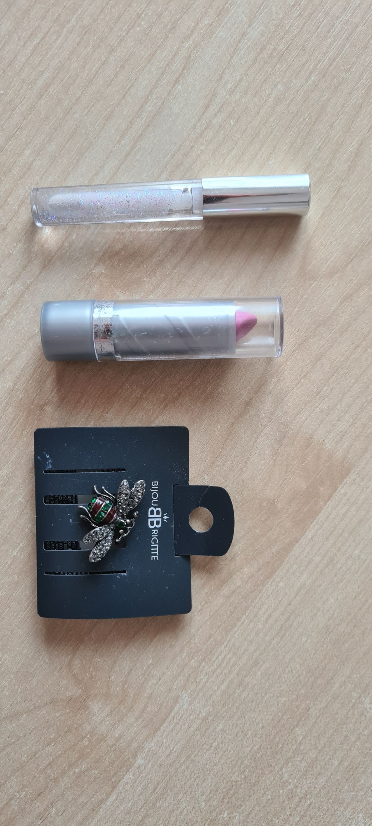 Šminky- rtěnka, lesk na rty, šperk " moucha"