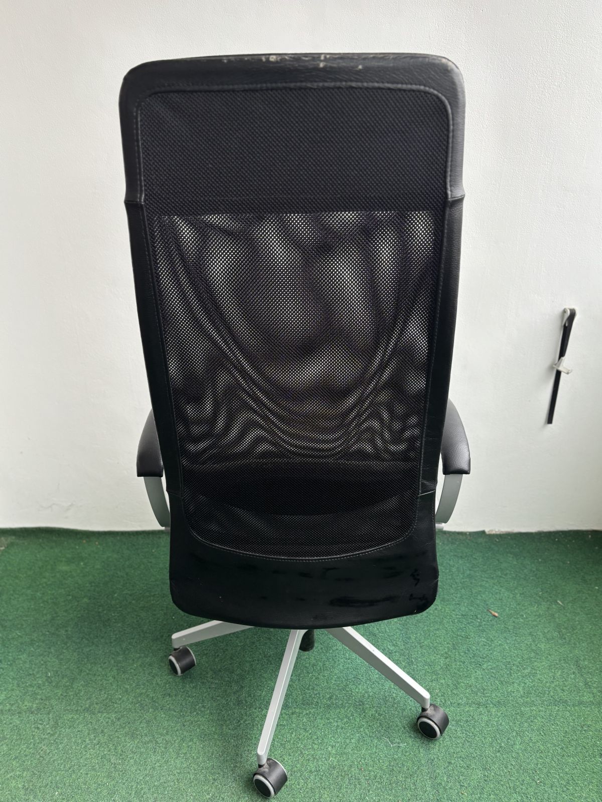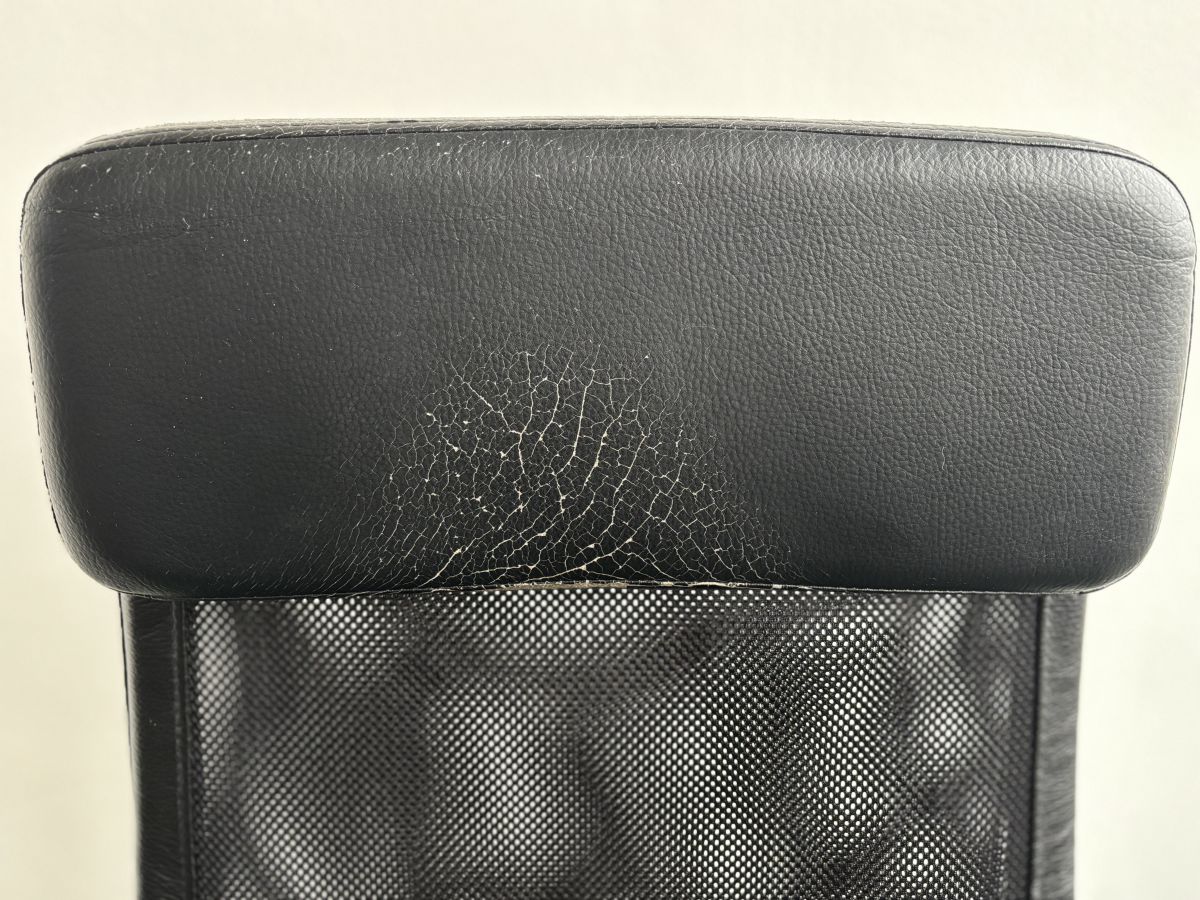 Stav: používané, viditelné známky opotřebení (opotřebená koženka na opěrce hlavy a sedáku – viz foto), síťovina v pořádku.
